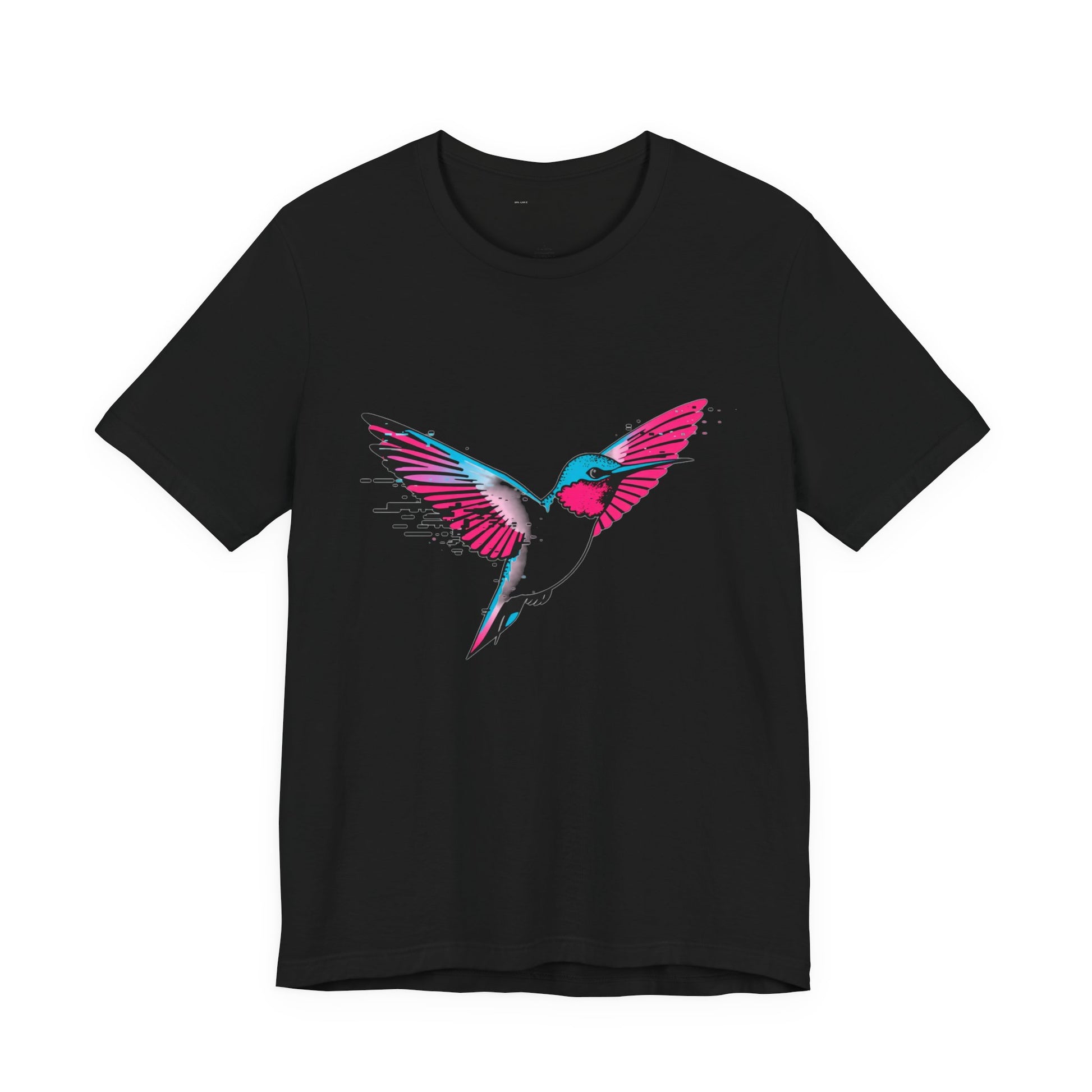 This glitch hummingbird tee perfectly captures that endless scroll energy we all know too well. Watch as realistic wings dissolve into pixelated chaos in electric cyan and hot coral pink.