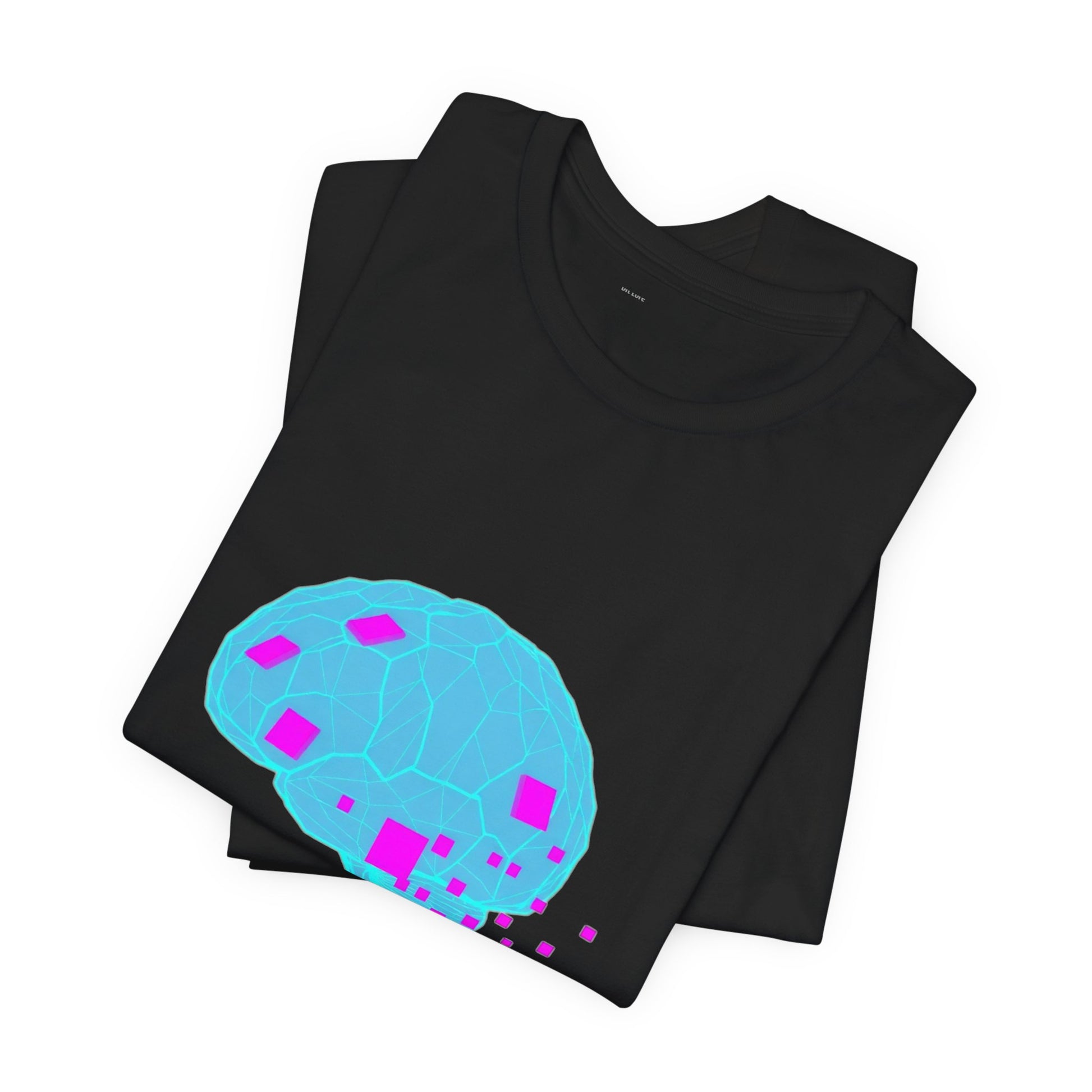 - Eye-catching neon brain design with pixelated fragments