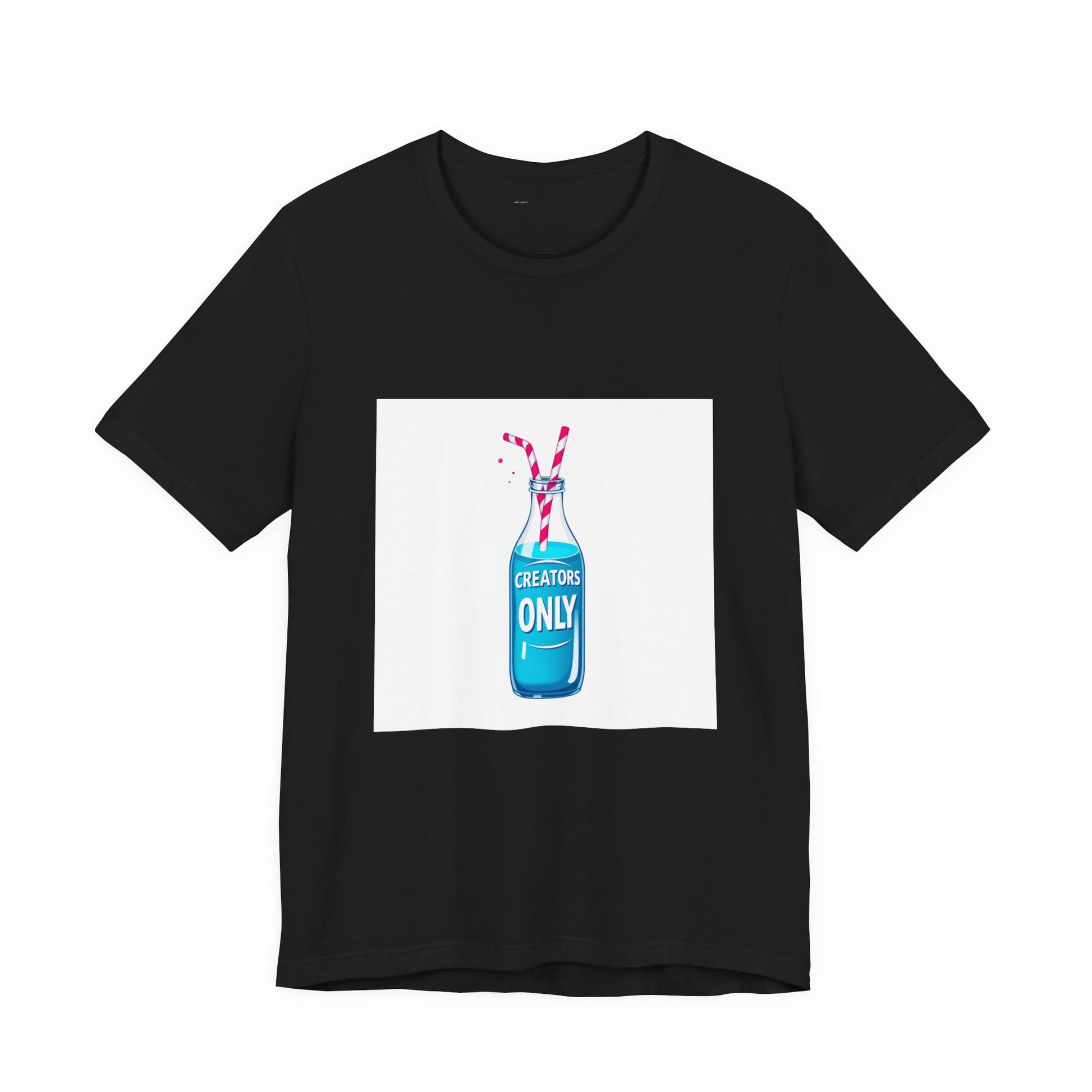 This vintage-inspired gaming tee features a retro milk bottle filled with electric blue energy drink goodness. Complete with classic red striped straw and that exclusive "CREATORS ONLY" vibe.